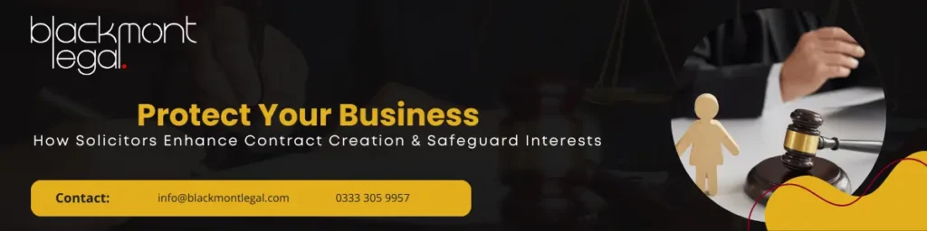 At Blackmont Legal, we’re committed to providing dependable and professional contract services. Whether you’re a business owner or an individual, our team of skilled solicitors in Manchester are here to guide you through the contract process, ensuring every detail aligns with your needs. So, are you ready to secure your legal agreements and safeguard your future? For expert guidance, contact us we’re here to help you navigate the complexities of contract law with ease and confidence.